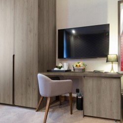Tablero de madera decorativa en tonos grisáceos con poros y nudos marcados, ideal para muebles y revestimientos interiores. Su diseño y acabado realzan una apariencia natural, moderna y elegante, perfecta para espacios residenciales y comerciales que buscan estilo y autenticidad.