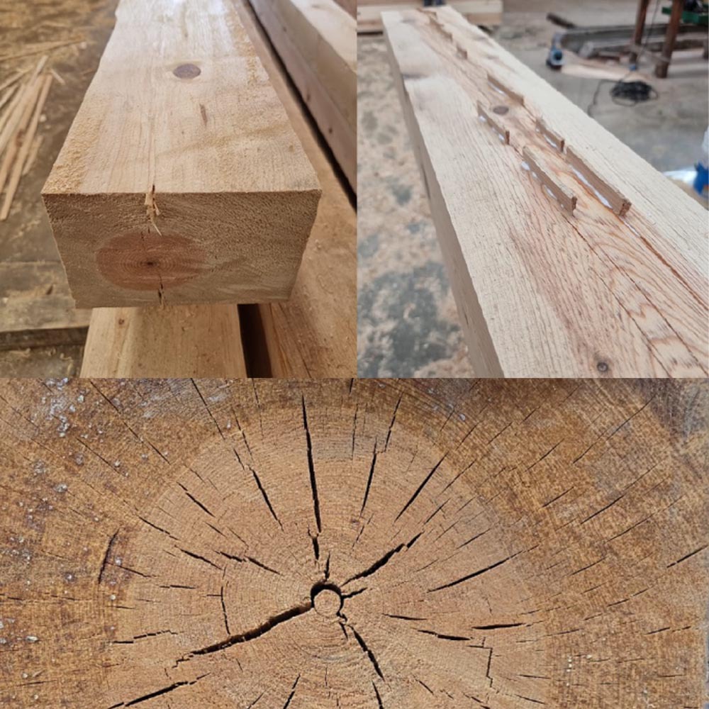 - Grietas Longitudinales: Generalmente son estéticas y no afectan la resistencia mecánica de la viga. Son parte del carácter natural de la madera maciza.